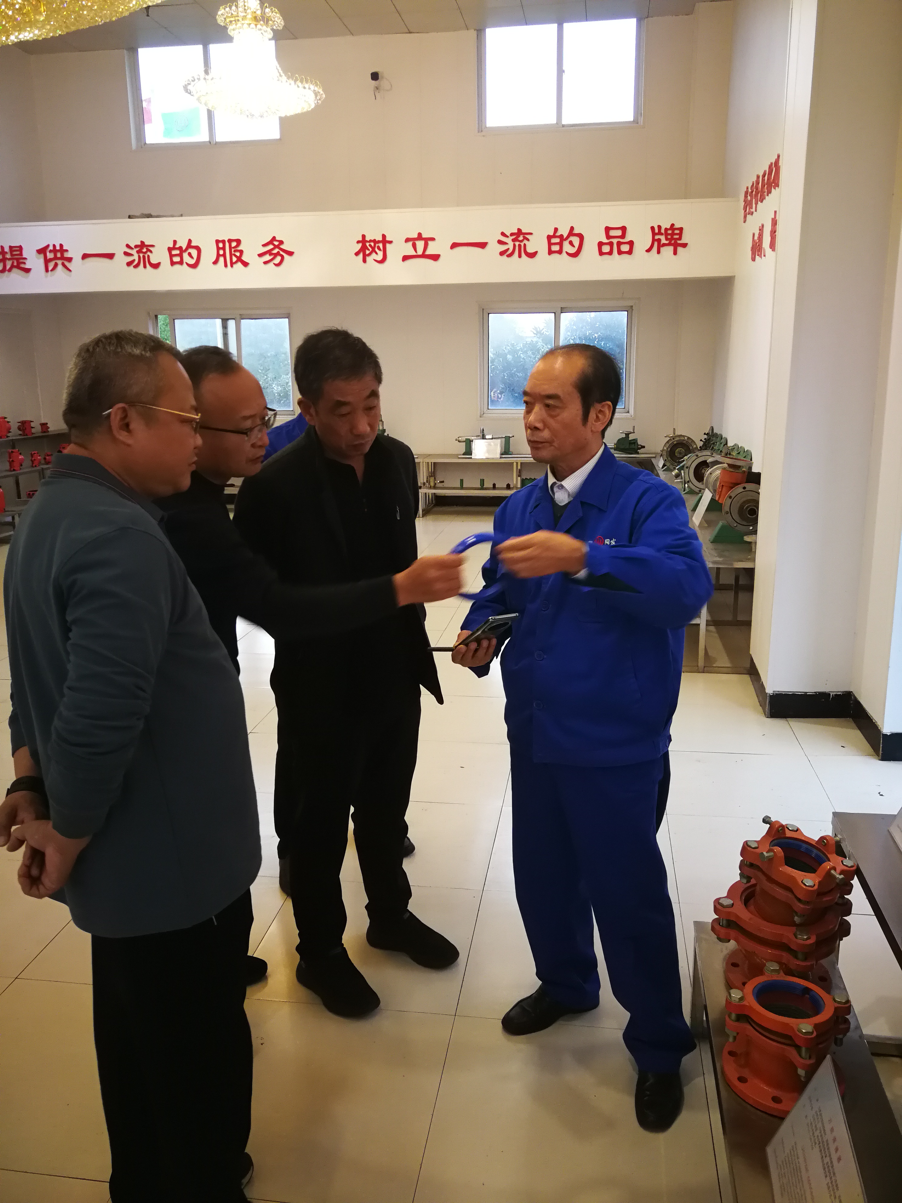 10月9號(hào)莘州水務(wù)集團(tuán)一行蒞臨我司參觀考察前來參觀考察,我司副總經(jīng)理黃勇熱情接待考察團(tuán)一行,陪同考察團(tuán)先后參觀了我公司生產(chǎn)裝配車間、智能數(shù)控中心、產(chǎn)品檢測中心,詳細(xì)介紹了企業(yè)發(fā)展歷程、歷年創(chuàng)新成果、以及綠色環(huán)保生產(chǎn)等情況。